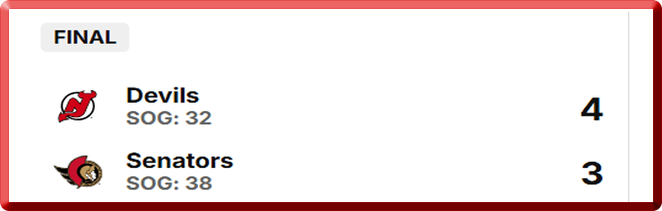 Senators Latest Game Results: