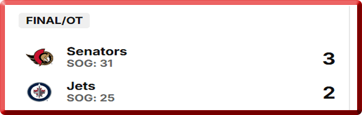 Senators Latest Game Results: